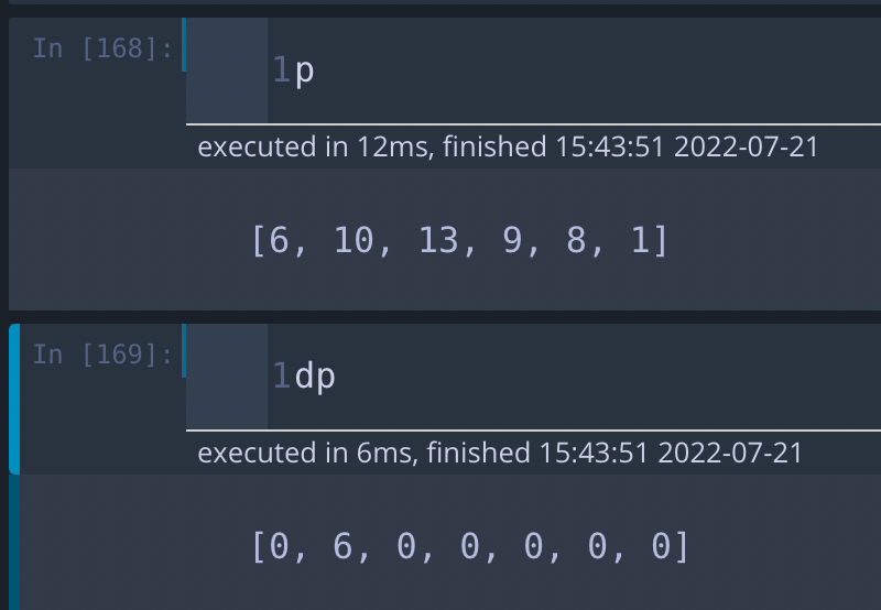 위 예제에 대해 위 코드 실행결과, p와 dp를 출력해보겠습니다.