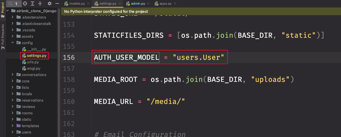 저는 users app의 User 모델을 만들었기 때문에 "users.User"입니다.