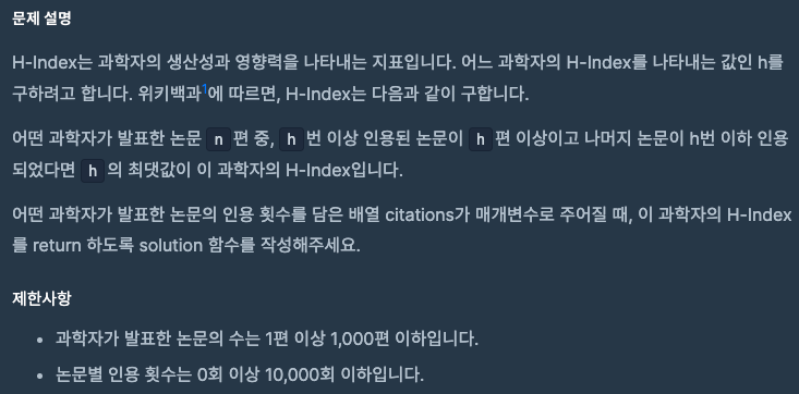 [프로그래머스] H-Index 📇 (Python) / level2 / 정렬