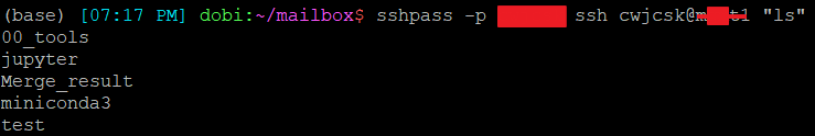 sshpass -p [계정비밀번호] ssh [접속계정]@[접속주소] "ls"