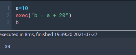 exec("b = a + 20")
